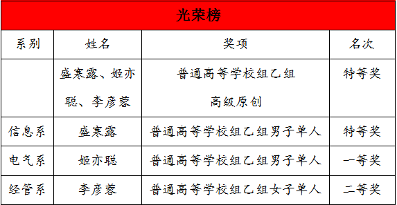 學(xué)院公共教學(xué)部教師高嘉晨帶領(lǐng)3名運(yùn)動員參加了普通高等學(xué)校乙組的比賽,本次全國排舞錦標(biāo)賽匯聚了來自全國各地的優(yōu)秀舞蹈團(tuán)隊(duì)和選手,競爭異常激烈。我院師生憑借扎實(shí)的舞蹈功底、出色的表演技巧和精湛的編排能力,在比賽中展現(xiàn)出了高超的藝術(shù)水平和專業(yè)素養(yǎng),贏得了評委和觀眾的一致好評。其中盛寒露、姬亦聰、李彥蓉榮獲普通高等學(xué)校組乙組高級原創(chuàng)項(xiàng)目特等獎,盛寒露獲得普通高等學(xué)校組乙組男子單人項(xiàng)目全場特等獎,姬亦聰獲得普通高等學(xué)校組乙組男子單人項(xiàng)目一等獎,李彥蓉榮獲普通高等學(xué)校組乙組女子單人項(xiàng)目二等獎。