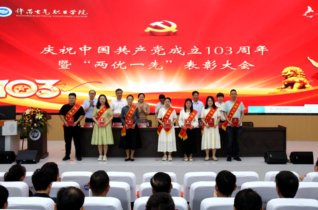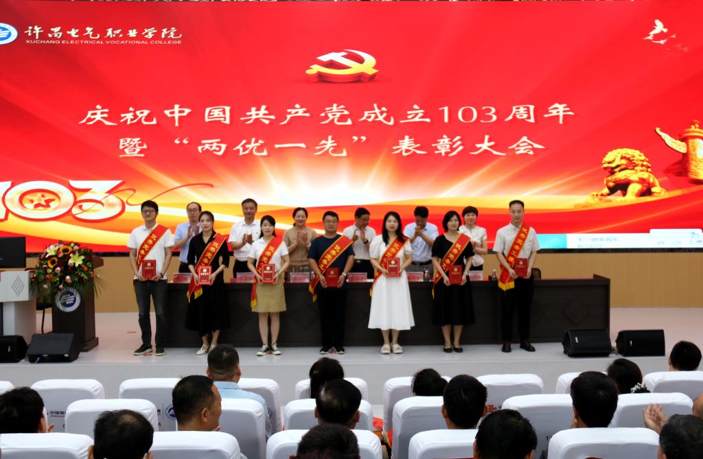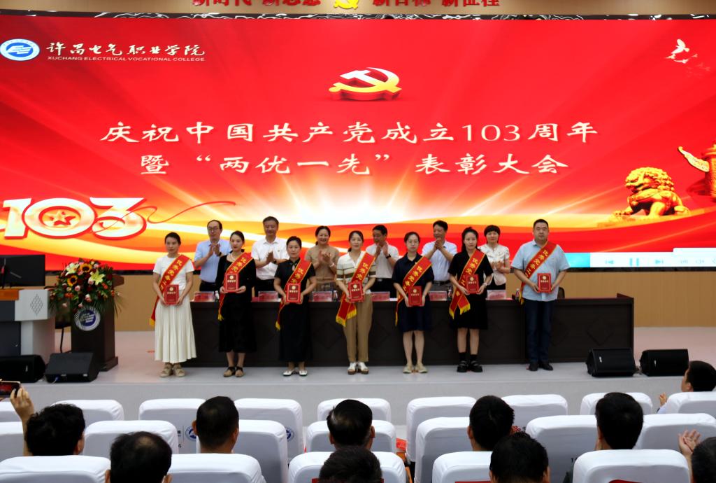 表彰大會在雄壯的國歌聲中拉開帷幕。院黨委書記彭占亭代表學(xué)院黨委向受到表彰的基層黨組織和個人表示熱烈的祝賀!向?qū)W院全體黨員致以節(jié)日的問候!彭占亭回顧了一年來,學(xué)院黨建工作取得的成效,號召全校廣大黨員以先進典型為標(biāo)桿,將榜樣力量轉(zhuǎn)化為攻堅克難、砥礪奮進的強大動力,各級黨組織和廣大黨員干部要抓住職業(yè)教育大發(fā)展的機遇,強質(zhì)量、補短板,重發(fā)展、找差距,以“黨建高質(zhì)量”為標(biāo)準(zhǔn),進一步強化從嚴治黨責(zé)任;以“三項機制”為導(dǎo)向,進一步強化干部隊伍建設(shè);以“規(guī)范過硬”為目標(biāo),進一步強化基層組織建設(shè);以“敬業(yè)奉獻”為標(biāo)尺,進一步強化先鋒模范引領(lǐng)作用,加快建設(shè)“有遠見卓識、有創(chuàng)新精神、有責(zé)任擔(dān)當(dāng)、有文化品位”的“四有”高校,帶領(lǐng)全院師生在實現(xiàn)“強校夢”的進程中實現(xiàn)自己的“育人夢”“成才夢”,書寫“中國夢”的電氣學(xué)院新篇章,以優(yōu)異成績和嶄新面貌向黨的生日獻禮!