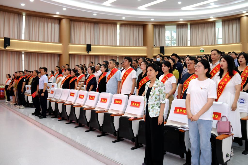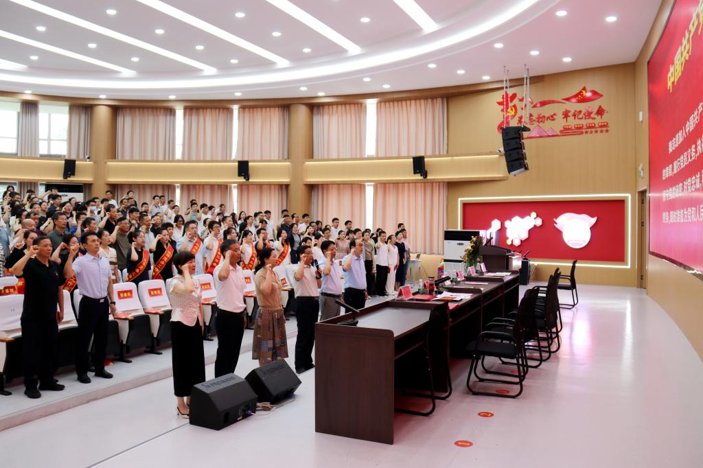 會上,200余名學(xué)院黨員在彭占亭的帶領(lǐng)下重溫入黨誓詞,鏗鏘有力的誓言響徹整個會場。