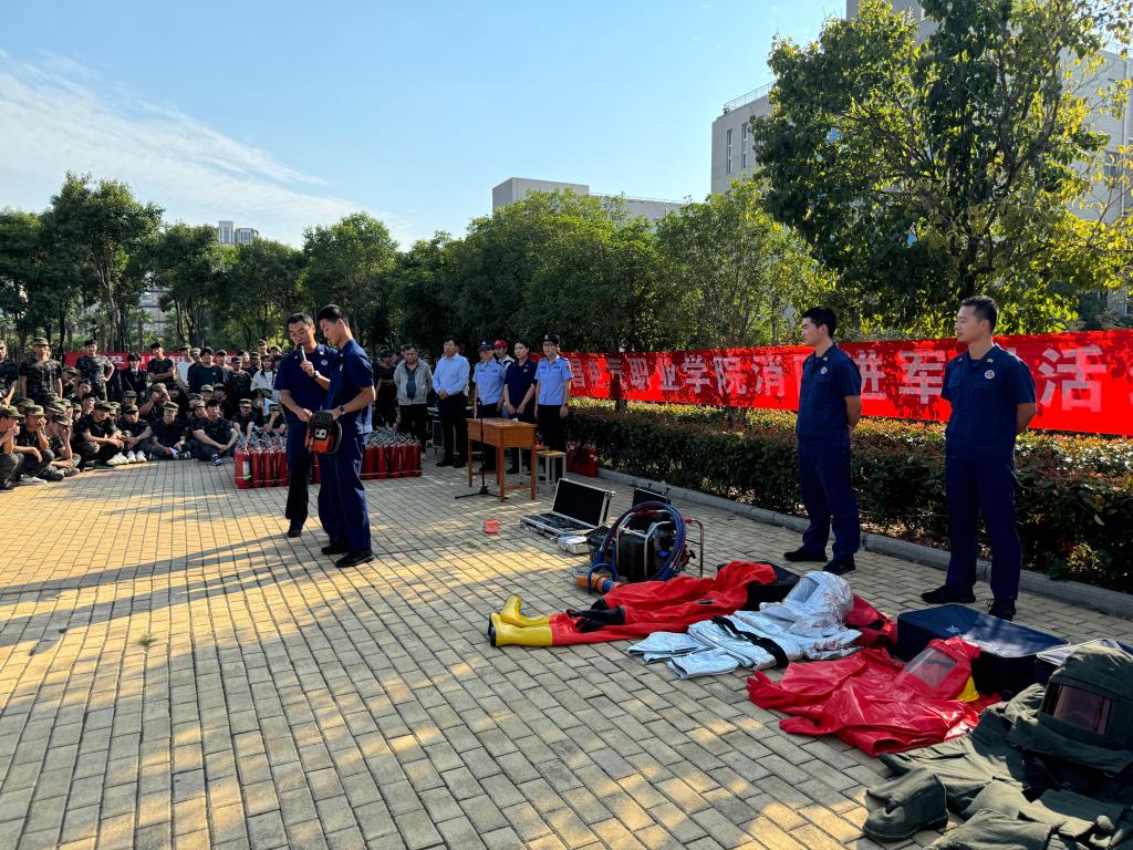 為增強(qiáng)學(xué)生安全意識,提升應(yīng)對突發(fā)事件的自救互救能力,9月23日下午,我院邀請示范區(qū)消防救援大隊(duì)官兵,在學(xué)院中心廣場為我院2024級新生舉行了“消防進(jìn)軍訓(xùn)”活動,保衛(wèi)處處長楊紹業(yè)出席活動并講話。