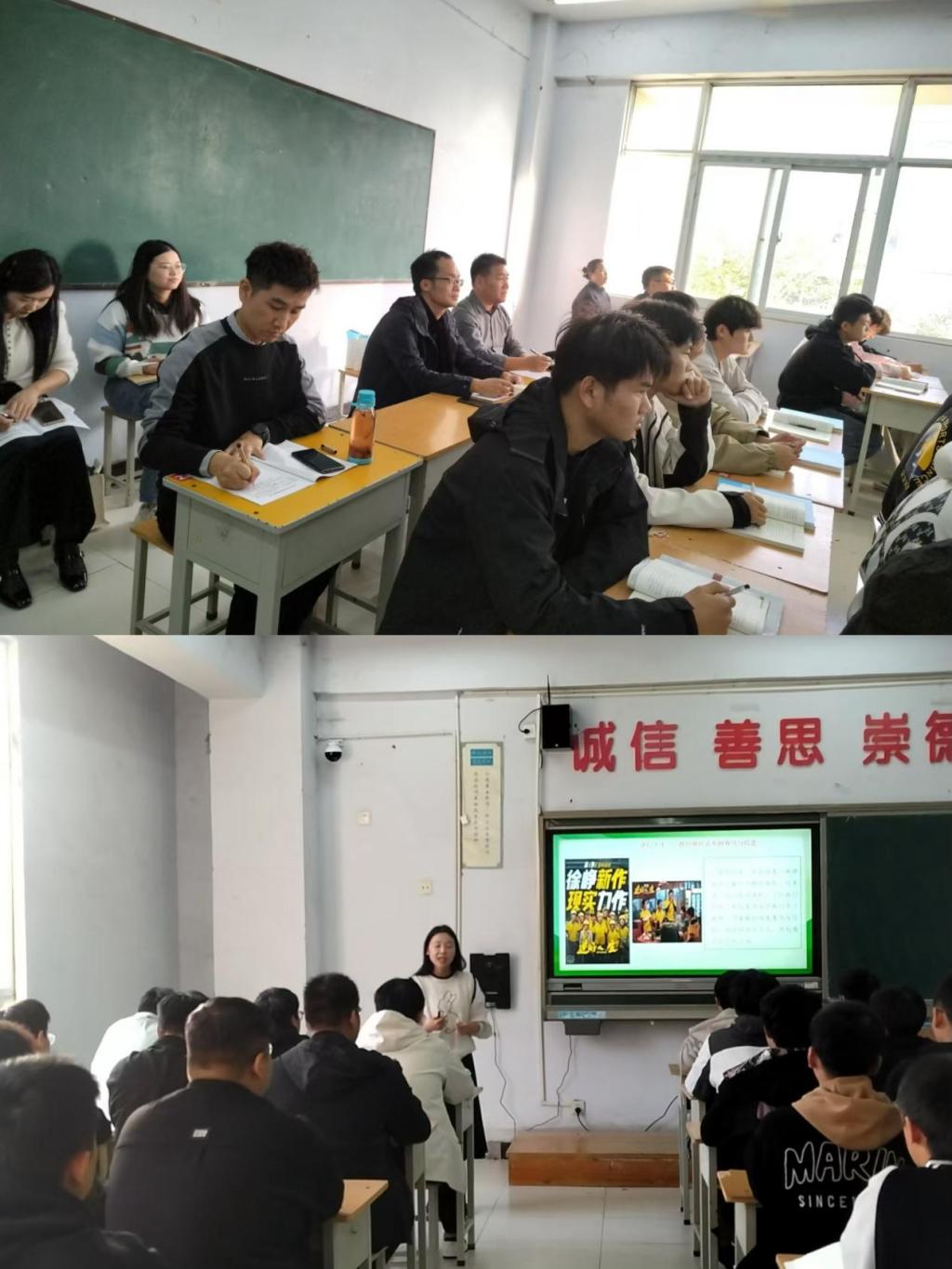 調(diào)研組專家采取對照課表、推門聽課的方式,聽取了第七節(jié)課,分別是思政課教師劉明月講授的《習近平新時代中國特色社會主義思想概論》課程第四章第一節(jié)“江山就是人民 人民就是江山”和汪子璇講授的《思想道德與法治》課程第二章第二節(jié)“堅定信仰信念信心”。聽課結束后,專家結合授課情況分別與兩位教師進行了詳細的交流反饋,認為兩位教師在教學設計的構思、教學內(nèi)容的把握以及教學案例的使用等方面準備充分,教學效果良好。專家們就教學重難點的講述、教學案例的精準運用、教學語言的組織等方面提出了寶貴的指導意見。同時,向學生發(fā)放了相關調(diào)查問卷,進一步了解學生對思政課的需求及黨的二十屆三中全會精神融入思政課情況。