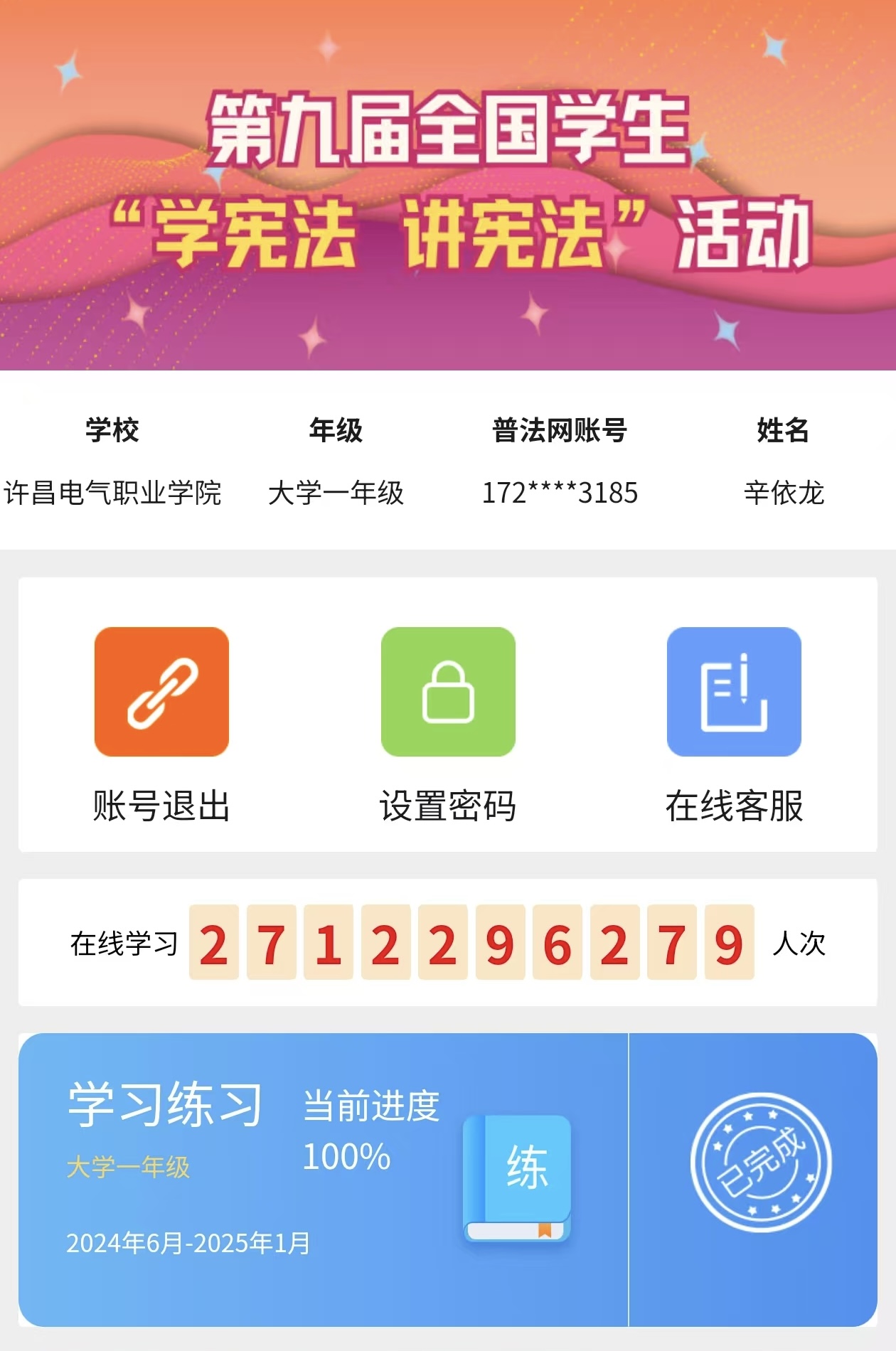 各二級學(xué)院積極組織學(xué)生參加全國學(xué)生“學(xué)憲法 講憲法”網(wǎng)絡(luò)學(xué)習(xí)和“憲法衛(wèi)士”行動計劃,鼓勵學(xué)生認(rèn)真學(xué)習(xí)憲法知識,提升學(xué)習(xí)活動的積極性和實效性,力爭實現(xiàn)學(xué)習(xí)教育廣覆蓋、見實效。截至活動結(jié)束,我院學(xué)生在普法網(wǎng)的學(xué)習(xí)參與率較高,有效推動了憲法知識的普及。