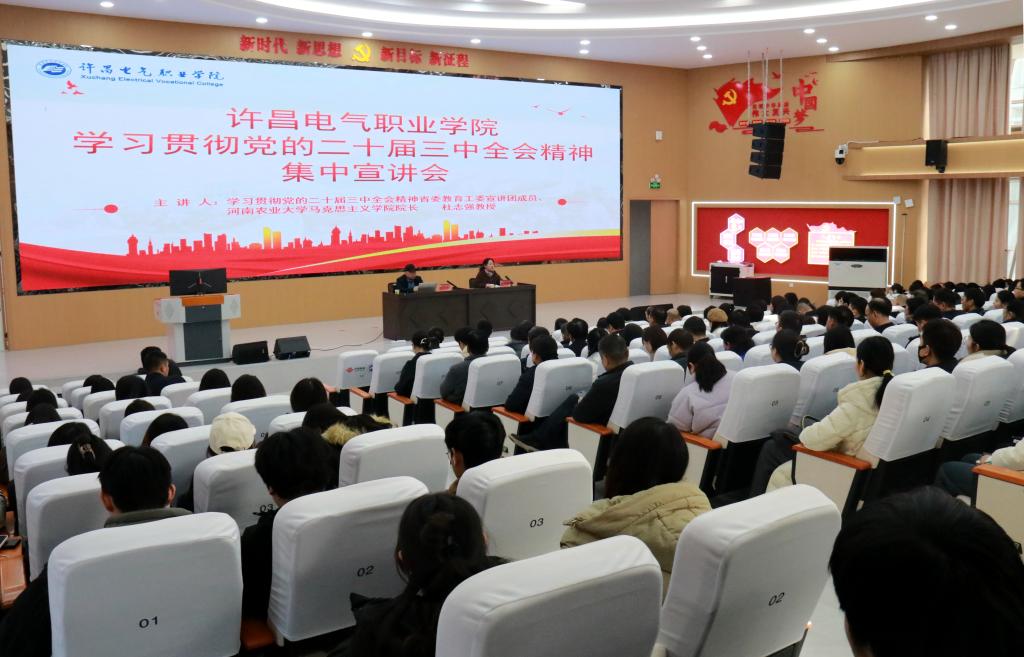 12月23日下午,學習貫徹黨的二十屆三中全會精神省委教育工委宣講團成員、河南農業(yè)大學馬克思主義學院院長杜志強教授在學院思政VR報告廳為學院師生作黨的二十屆三中全會精神宣講。學院領導班子成員、黨委委員、學院正科級以上領導干部、馬克思主義學院全體教師、學院專職輔導員、學院優(yōu)秀學生代表參加宣講會。宣講會由院黨委副書記張明慧主持。