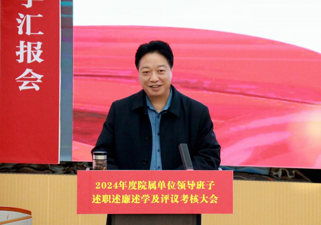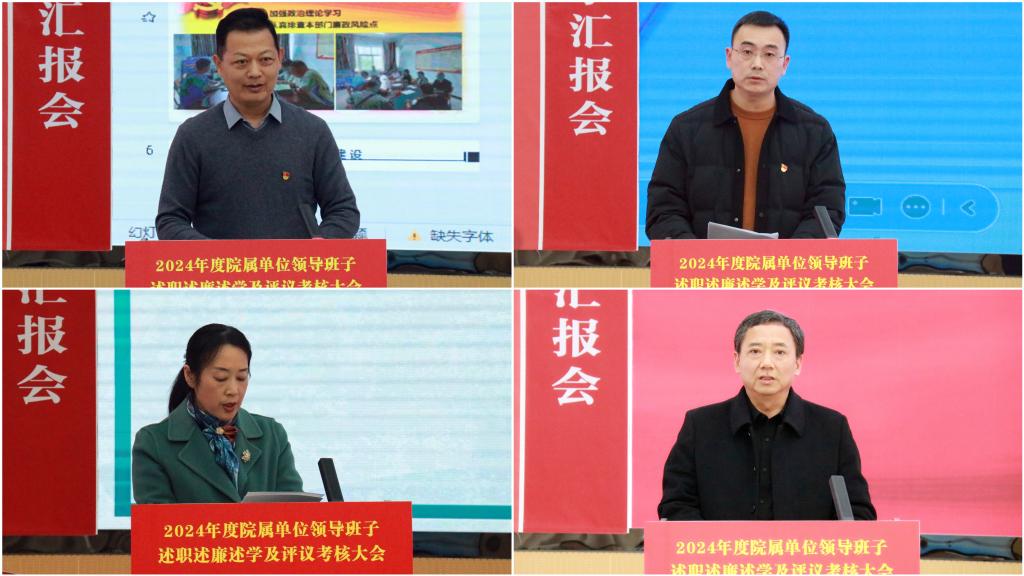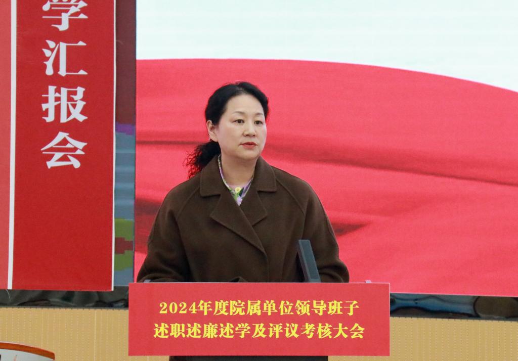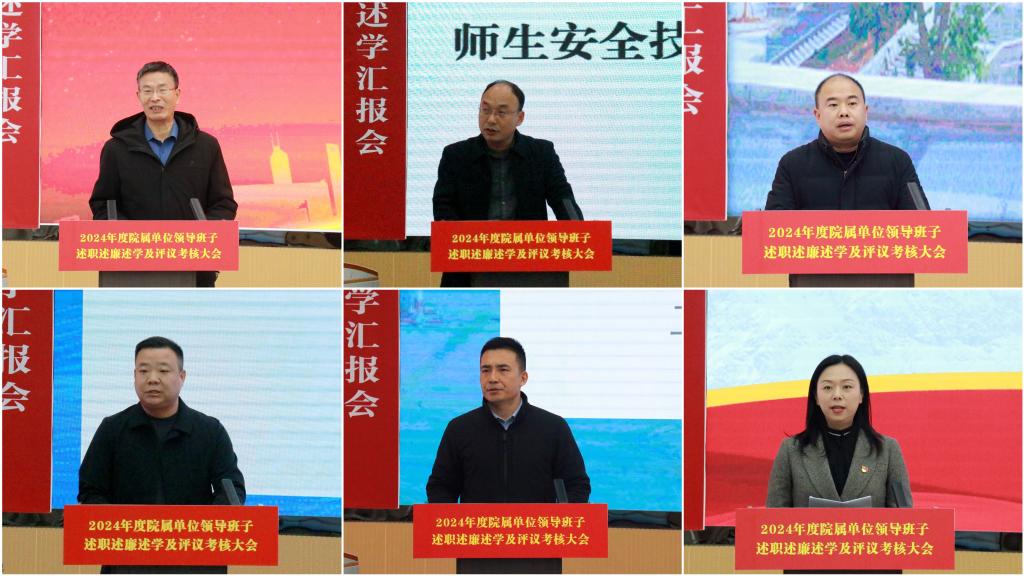 為進(jìn)一步統(tǒng)一思想、明確方向、凝聚共識,全面回顧與總結(jié)過去一年各單位取得的顯著成績,確保新的一年以更飽滿的熱情、更加扎實(shí)的作風(fēng)、更加高效的行動(dòng),推動(dòng)各項(xiàng)工作再上新臺階,1月7日,學(xué)院召開2024年度院屬單位領(lǐng)導(dǎo)班子述職述廉述學(xué)及評議考核大會。學(xué)院全體領(lǐng)導(dǎo)班子成員、各部門負(fù)責(zé)同志、部分科級以上干部、教師代表參與考核評議。院黨委副書記張明慧主持會議。