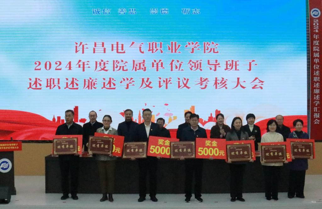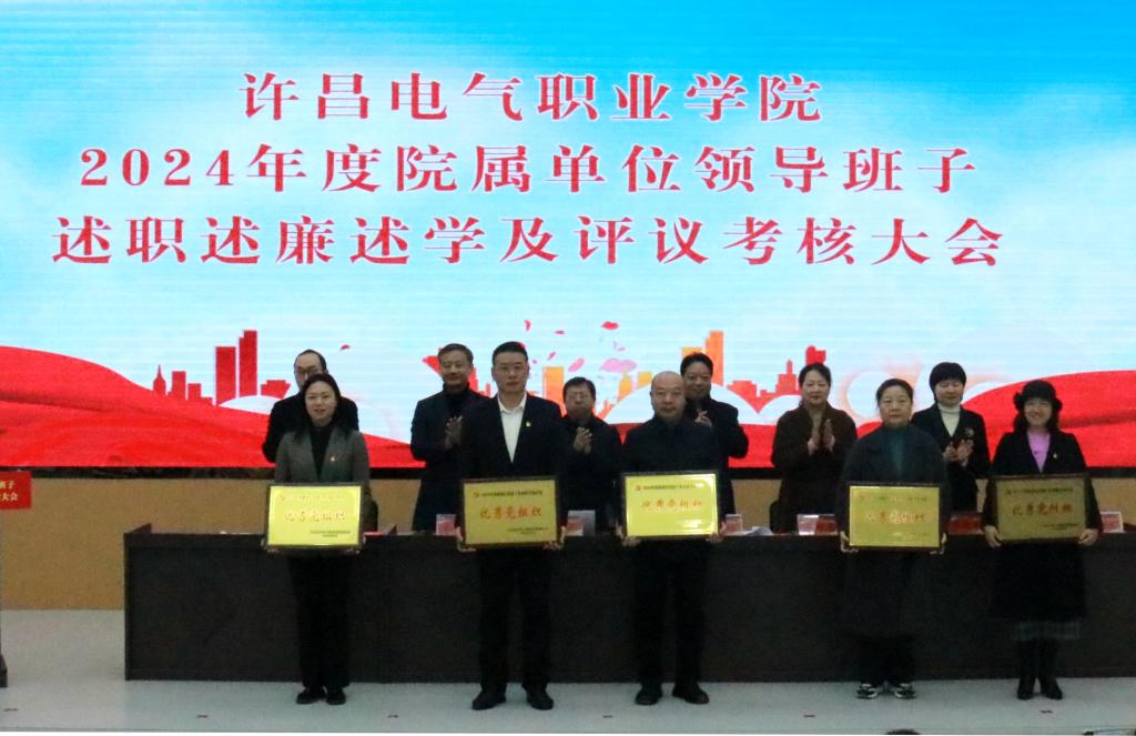 會上,工會主席張貴軍宣讀《中共許昌電氣職業(yè)學(xué)院委員會關(guān)于2023年度基層黨組織書記抓黨建工作述職考核評議結(jié)果的通報(bào)》,副院長賈楠宣讀《許昌電氣職業(yè)學(xué)院關(guān)于表揚(yáng)2023年度考核優(yōu)秀單位的通報(bào)》。學(xué)院領(lǐng)導(dǎo)為上年度基層黨建述職評議考核優(yōu)秀黨組織和考核優(yōu)秀單位頒發(fā)獎(jiǎng)牌。