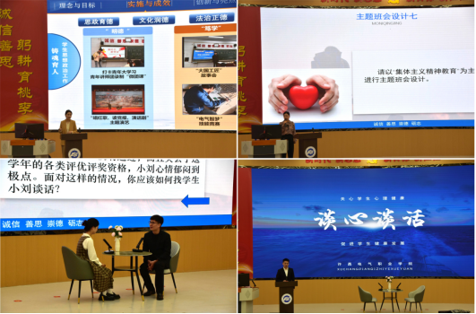 本次大賽分為輔導(dǎo)員組和班主任組兩個(gè)賽道。輔導(dǎo)員組決賽聚焦“談心談話”實(shí)戰(zhàn)能力,參賽選手需在規(guī)定時(shí)間內(nèi)針對(duì)抽選的學(xué)生案例開展教育引導(dǎo),并圍繞談話成效進(jìn)行總結(jié),全面考察其對(duì)學(xué)生的思想引領(lǐng)、成長(zhǎng)規(guī)律把握及問題解決能力。班主任組決賽則通過“班級(jí)建設(shè)方案陳述”和“主題班會(huì)設(shè)計(jì)”兩個(gè)環(huán)節(jié),綜合檢驗(yàn)班主任的班級(jí)管理策略、思政育人格局及創(chuàng)新實(shí)踐能力,其中主題班會(huì)環(huán)節(jié)要求選手現(xiàn)場(chǎng)運(yùn)用白板、彩紙等工具進(jìn)行說課展示,充分體現(xiàn)職教特色。