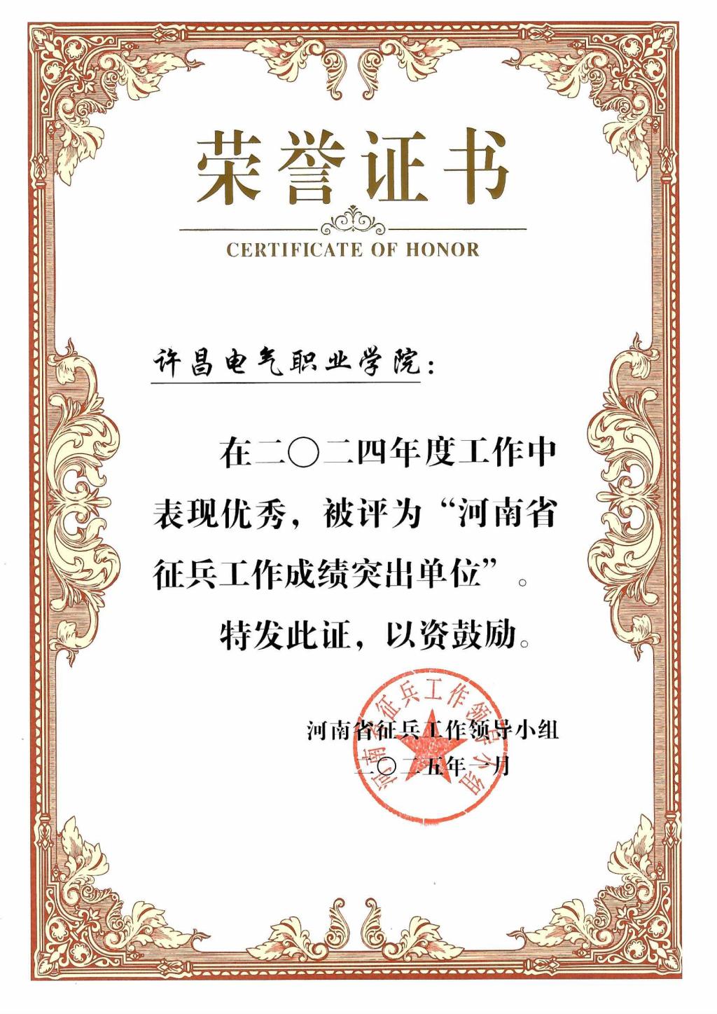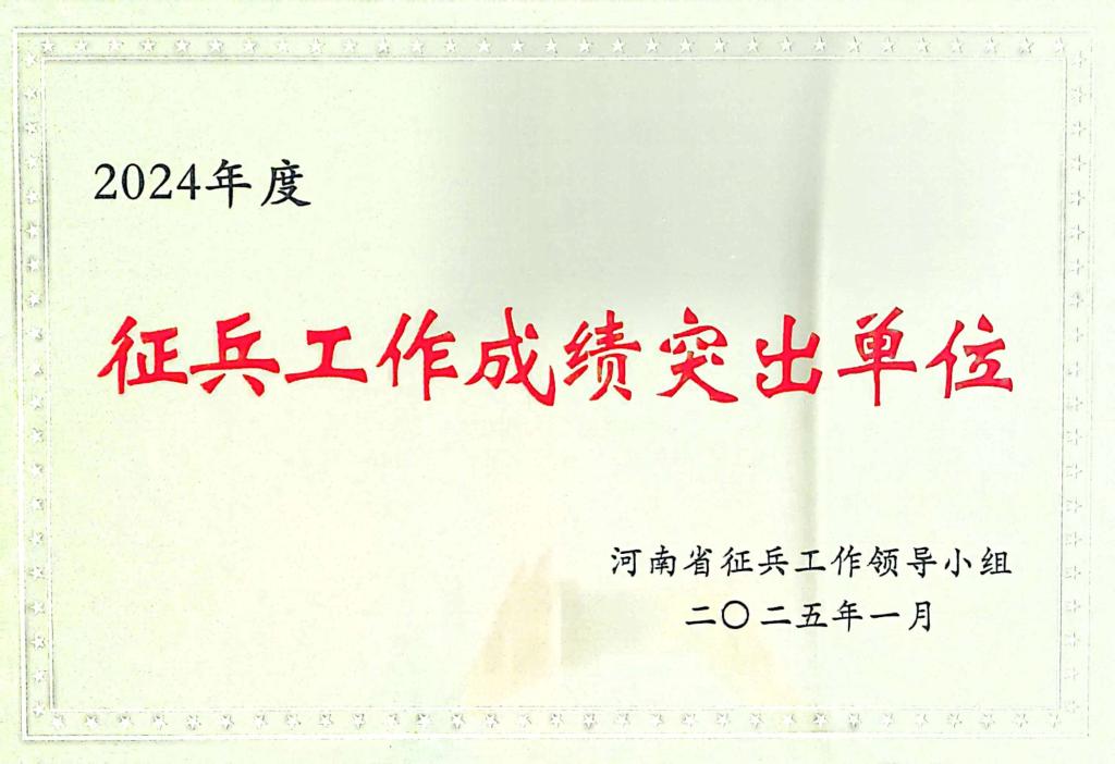 近日,河南省征兵領(lǐng)導(dǎo)小組下發(fā)《關(guān)于表揚(yáng)2024年河南省征兵工作成績突出單位和個(gè)人的通報(bào)》(豫征〔2025〕1號),我院榮獲河南省“征兵工作成績突出單位”,此次全省共有20所普通高等院校受到表彰。
