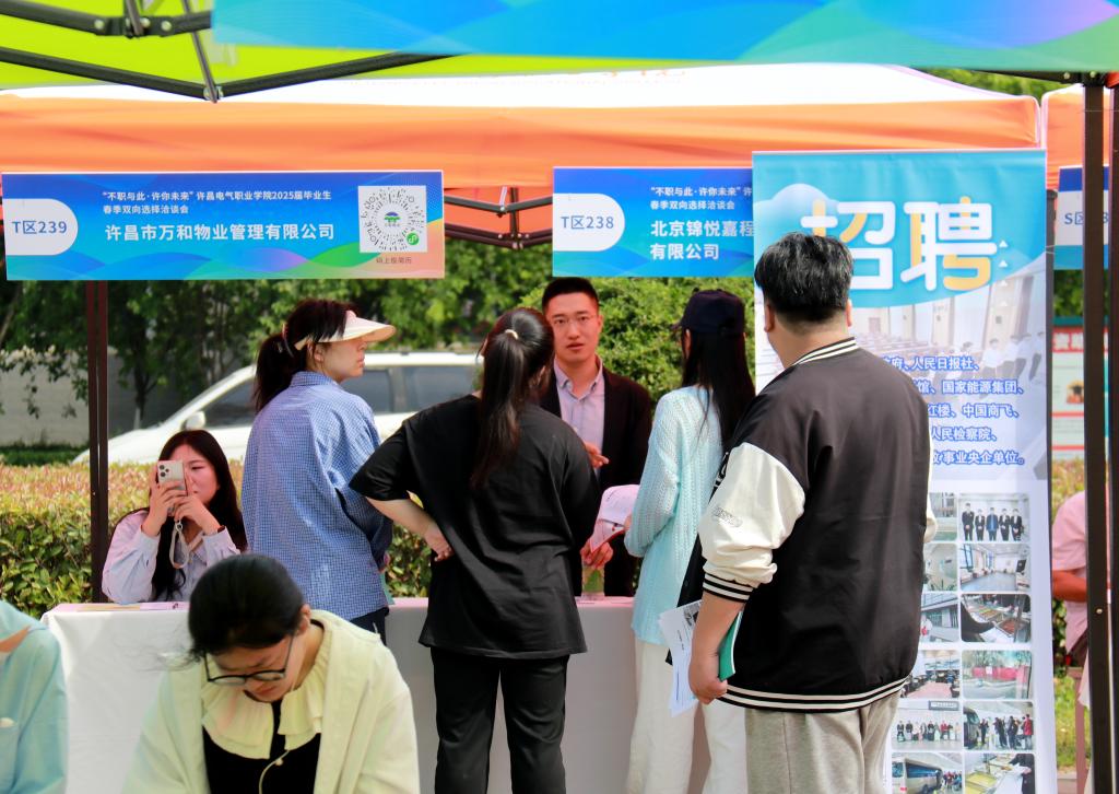 為加快構(gòu)建高校畢業(yè)生高質(zhì)量就業(yè)服務(wù)體系,搶抓就業(yè)工作關(guān)鍵期,全力促進(jìn)畢業(yè)生充分就業(yè),4月18日,由河南省教育廳指導(dǎo)、許昌電氣職業(yè)學(xué)院主辦的“不職與此·許你未來”2025屆畢業(yè)生春季雙向選擇洽談會(huì)在學(xué)院西門廣場(chǎng)舉行。