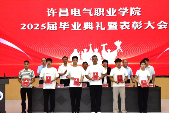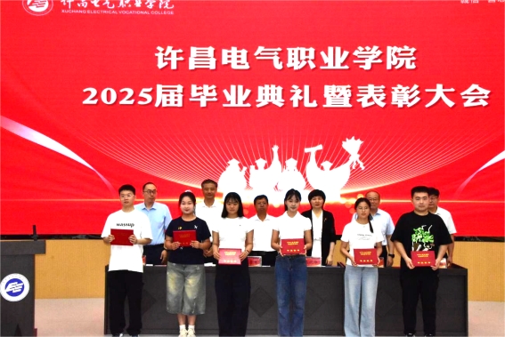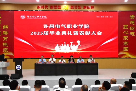 典禮伊始,全場師生莊嚴(yán)肅立,齊聲高唱國歌。嘹亮的歌聲在會(huì)場激蕩,承載著對(duì)祖國的無限熱愛,也為這場充滿希望與榮耀的盛會(huì)奠定了激昂基調(diào)。會(huì)上介紹了2025屆畢業(yè)生專升本情況,宣讀了《許昌電氣職業(yè)學(xué)院關(guān)于辦理2025年普通專科學(xué)歷證書的報(bào)告》、《河南省教育廳關(guān)于表彰2025年河南省優(yōu)秀應(yīng)屆大中專畢業(yè)生的通知》、《許昌電氣職業(yè)學(xué)院關(guān)于表彰2025年優(yōu)秀應(yīng)屆大中專畢業(yè)生的決定》。