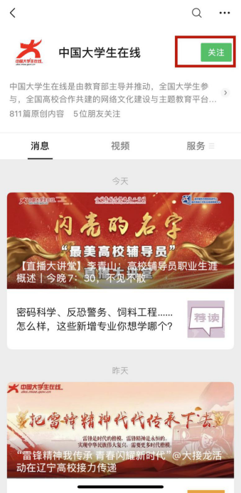 關(guān)注“中國大學生在線”微信公眾號,點擊菜單欄“服務(wù)”,即可跳轉(zhuǎn)至“四史學習”界面(如下圖)