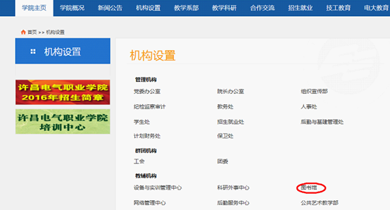 第二步在“機(jī)構(gòu)設(shè)置”欄目中找到“圖書館”