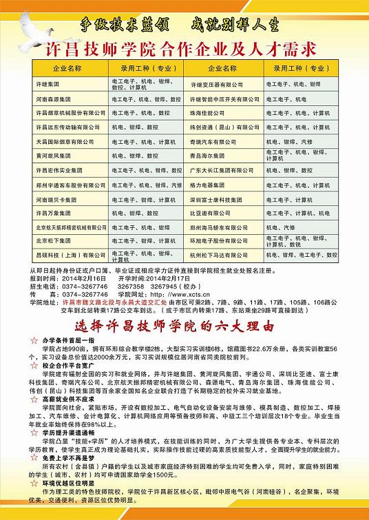 地址:河南省許昌市魏文路與永昌大道(北環(huán)路)交叉口 電話:0374-3189898傳真電話:0374-3189889 招生就業(yè)處電話:0374-3189962網(wǎng)絡管理中心制作維護 E-mail:xcdqxy@163.com