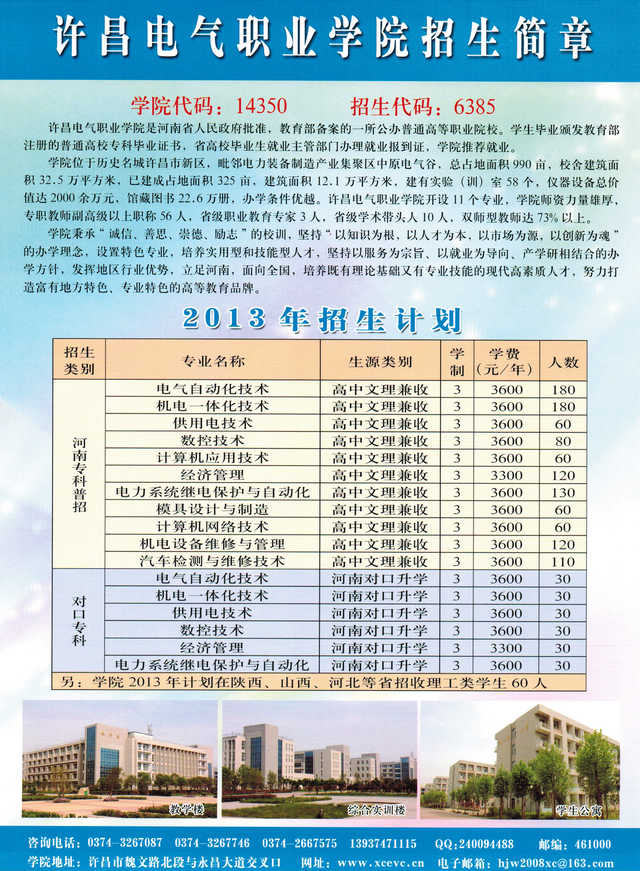地址:河南省許昌市魏文路與永昌大道(北環(huán)路)交叉口 電話:0374-3189898傳真電話:0374-3189889 招生就業(yè)處電話:0374-3189962網(wǎng)絡管理中心制作維護 E-mail:xcdqxy@163.com