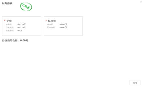 學(xué)生點擊財務(wù)繳服務(wù),進(jìn)入財務(wù)繳費頁面可實時查看自己應(yīng)繳費用項目和繳費狀態(tài)等信息,如下圖所示: