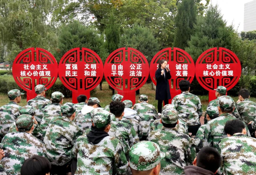????在對(duì)新生進(jìn)行常規(guī)的軍事訓(xùn)練和軍事理論學(xué)習(xí)外,許昌電氣職業(yè)學(xué)院還將思政課開到了“演兵場(chǎng)”上。10月15日,該校公共教學(xué)部的思政老師張自立利用新生軍訓(xùn)休息間隙,給信息工程系2020級(jí)新生上了大學(xué)的第一堂思政課。