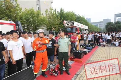 許昌電氣職業(yè)學(xué)院一直把消防安全作為學(xué)校的大事來抓,時刻繃緊消防安全這根弦,定期組織開展各種消防安全檢查和培訓(xùn)工作。近日,借助學(xué)生軍訓(xùn)的時機,該校邀請市消防支隊防火處的消防官兵來到學(xué)校,為該校2016級新生舉行了一場消防知識培訓(xùn)。活動中,該校參訓(xùn)新生聽取了消防知識講座,并近距離觀看了各類消防器材的使用。通過學(xué)習(xí)和演練,大家不但真切地感受到生命的可貴,還加強了自身的防火意識,掌握了基本的消防安全防范技能和自我保護能力。