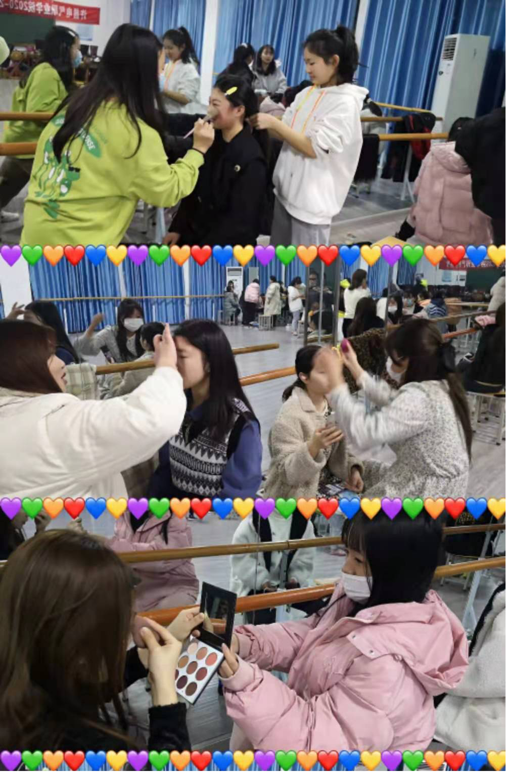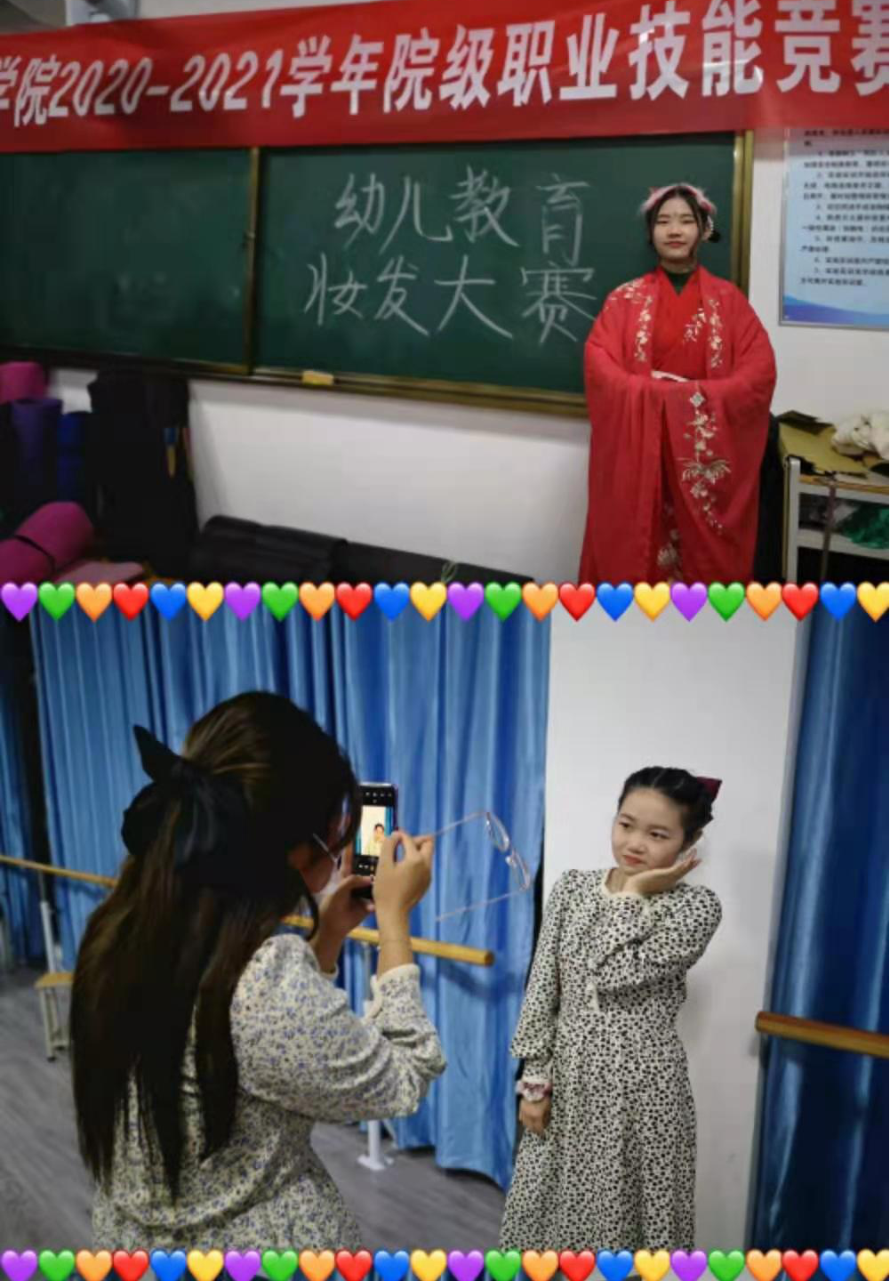 ????為提高學(xué)生的藝術(shù)修養(yǎng)和職業(yè)技能,展現(xiàn)學(xué)生的青春風(fēng)采,豐富校園生活,藝術(shù)系19級(jí)幼兒教育班于12月10日下午在舞蹈教室舉辦了以‘“妝”飾自己 點(diǎn)亮未來(lái)'為主題的妝發(fā)比賽。