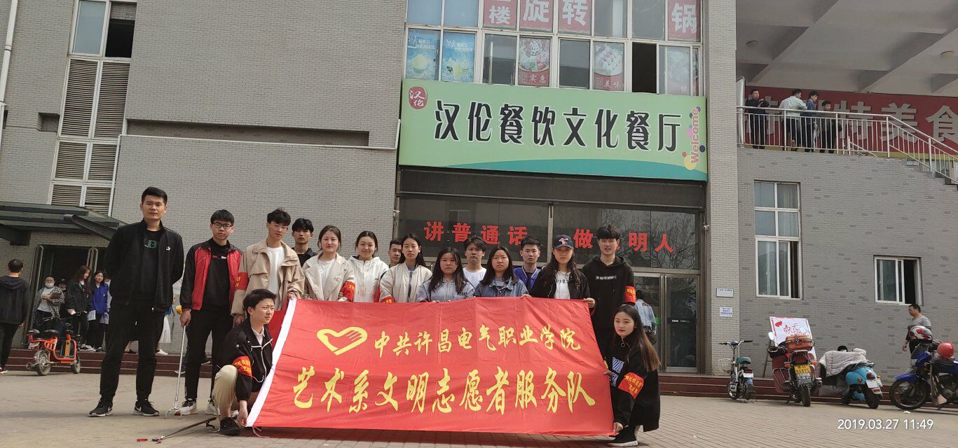 ????為進(jìn)一步弘揚“學(xué)習(xí)雷鋒、奉獻(xiàn)他人、提升自己”的志愿服務(wù)精神,3月13-20日,藝術(shù)系團(tuán)總支策劃開展“學(xué)雷鋒,環(huán)保校園行”的志愿服務(wù)活動。本次活動主要圍繞美化清潔校園環(huán)境和幫助引導(dǎo)學(xué)生就餐時養(yǎng)成良好習(xí)慣而展開。