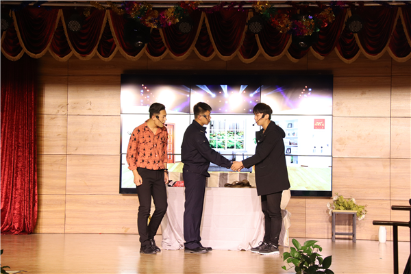 ????創(chuàng)意主持《瘋狂電視臺》、青春歌曲《同桌的你》、朗誦《那些年我們好像很有錢》等節(jié)目贏得了在場嘉賓和學生們的廣泛好評,伴隨著《明天會更好》的音樂,整場晚會圓滿結(jié)束。