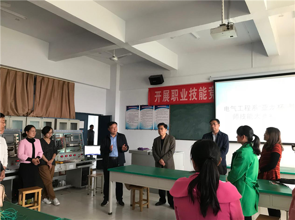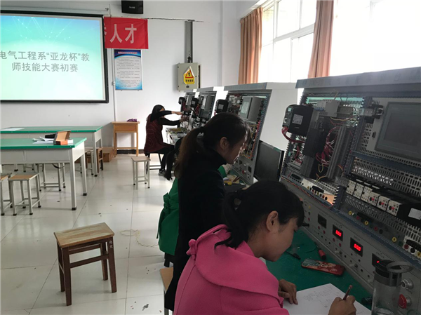 ????為迎接11月23日在我院舉辦的“2018 年全國(guó)職業(yè)院校機(jī)電類(lèi)專業(yè)教師實(shí)踐教學(xué)能力交流活動(dòng)”,電氣工程系于10月25日下午在實(shí)訓(xùn)樓A317舉辦了“亞龍杯”教師技能大賽初賽。院長(zhǎng)楊德嶺、副院長(zhǎng)馮朝印在電氣工程系負(fù)責(zé)人朱金偉的陪同下深入比賽現(xiàn)場(chǎng)看望技能大賽教師,了解備賽情況。