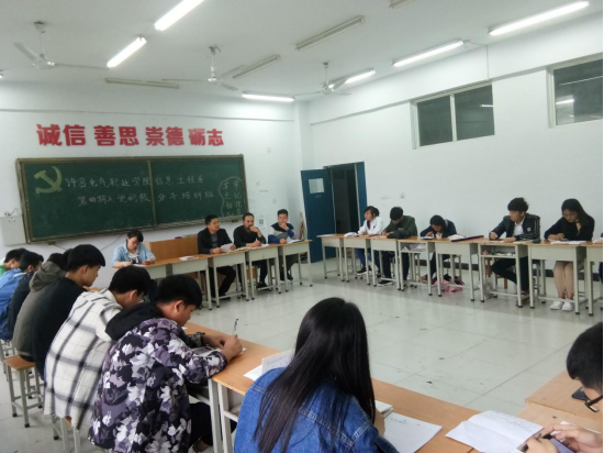 2018年5月21日下午,信息工程系在教學樓A414教室舉行“信息工程系第四期入黨積極分子分組討論”課程,信息工程系老師王旭、徐俊、薛小瑞、李曉偉、王琪及26名學生入黨積極分子參與討論。