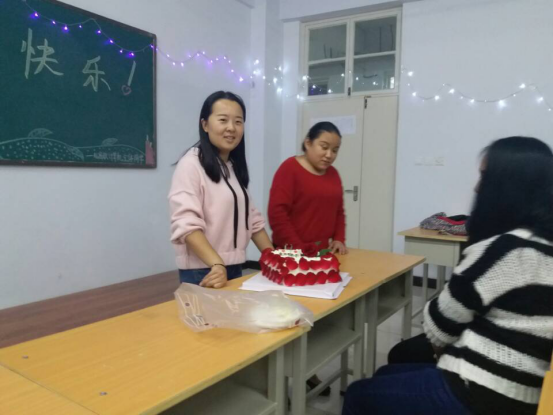 在班委們與同學(xué)的精心組織策劃下,在周日下午認(rèn)真用心裝扮教室,分工明確,體顯班級里早已形成的一種特殊精神“共同責(zé)任,共同擔(dān)當(dāng)”。當(dāng)晚的班會彩燈閃爍,同學(xué)心懷感恩,當(dāng)輔導(dǎo)員老師任甜甜走進(jìn)教室的瞬間內(nèi)心充滿驚喜與感動。隨后班內(nèi)燈火突滅,班長手捧蛋糕推門而進(jìn),同學(xué)全體起立齊聲道“姐,節(jié)日快樂。”任老師心情激動地說“同樣的時間,同樣的地點(diǎn),同樣的一切給了她無法復(fù)制的感動,謝謝同學(xué)們!”隨后對同學(xué)們一年來每個人的變化作了深情的評析并祝愿每個兄弟姐妹的未來更加美好,學(xué)有所成!這也是這個班級特殊的感情,超越師生,親如兄弟姐妹,更像是一個特殊的家庭。