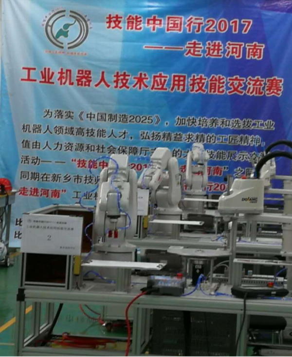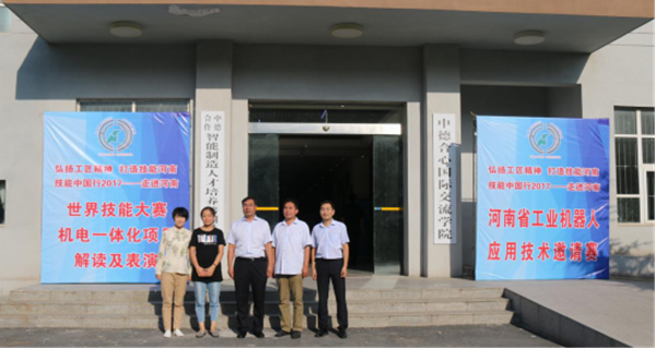 2017年9月14日,“技能中國行2017----走進(jìn)河南”全省工業(yè)機(jī)器人技術(shù)應(yīng)用技能大賽在新鄉(xiāng)技師學(xué)院舉行。人社部職教司張立新司長、河南省人社廳劉世偉廳長、李甄副廳長、新鄉(xiāng)技師學(xué)院朱性福書記、張林院長、中德棟梁教育集團(tuán)蔣作棟總經(jīng)理等相關(guān)領(lǐng)導(dǎo)觀摩“技能中國行2017——走進(jìn)河南”全省工業(yè)機(jī)器人技術(shù)應(yīng)用技能大賽。