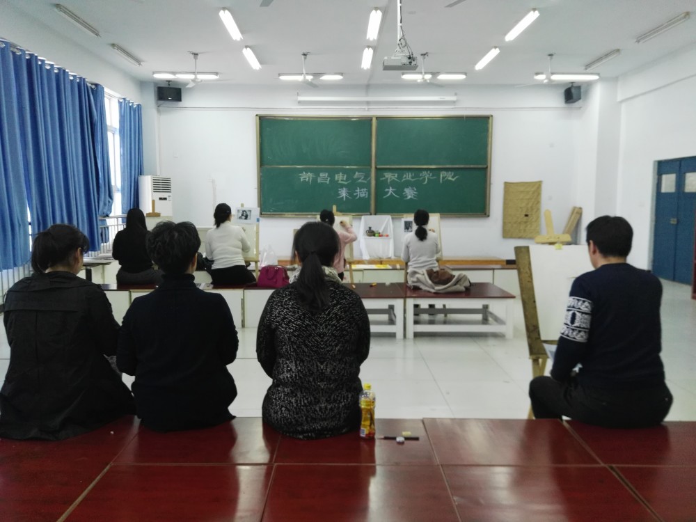 在比賽中各位老師靈活的運用素描手法、創(chuàng)意思維、美學(xué)構(gòu)圖,充分展示了藝術(shù)系教師們過硬的專業(yè)基礎(chǔ)和良好的精神風(fēng)貌。繪畫比賽過程中大家聚精會神,三個小時的賽程,老師們運筆如飛。教務(wù)處潘俊峰處長親臨現(xiàn)場指導(dǎo)比賽。藝術(shù)系主任閻瑾瑜、董淑紅,信息工程系主任陳曉紅、郭赟以及公共教學(xué)部主任李保茹全程監(jiān)督,并不時地在選手們身旁觀摩,為整個比賽增添了嚴肅性與公正性。