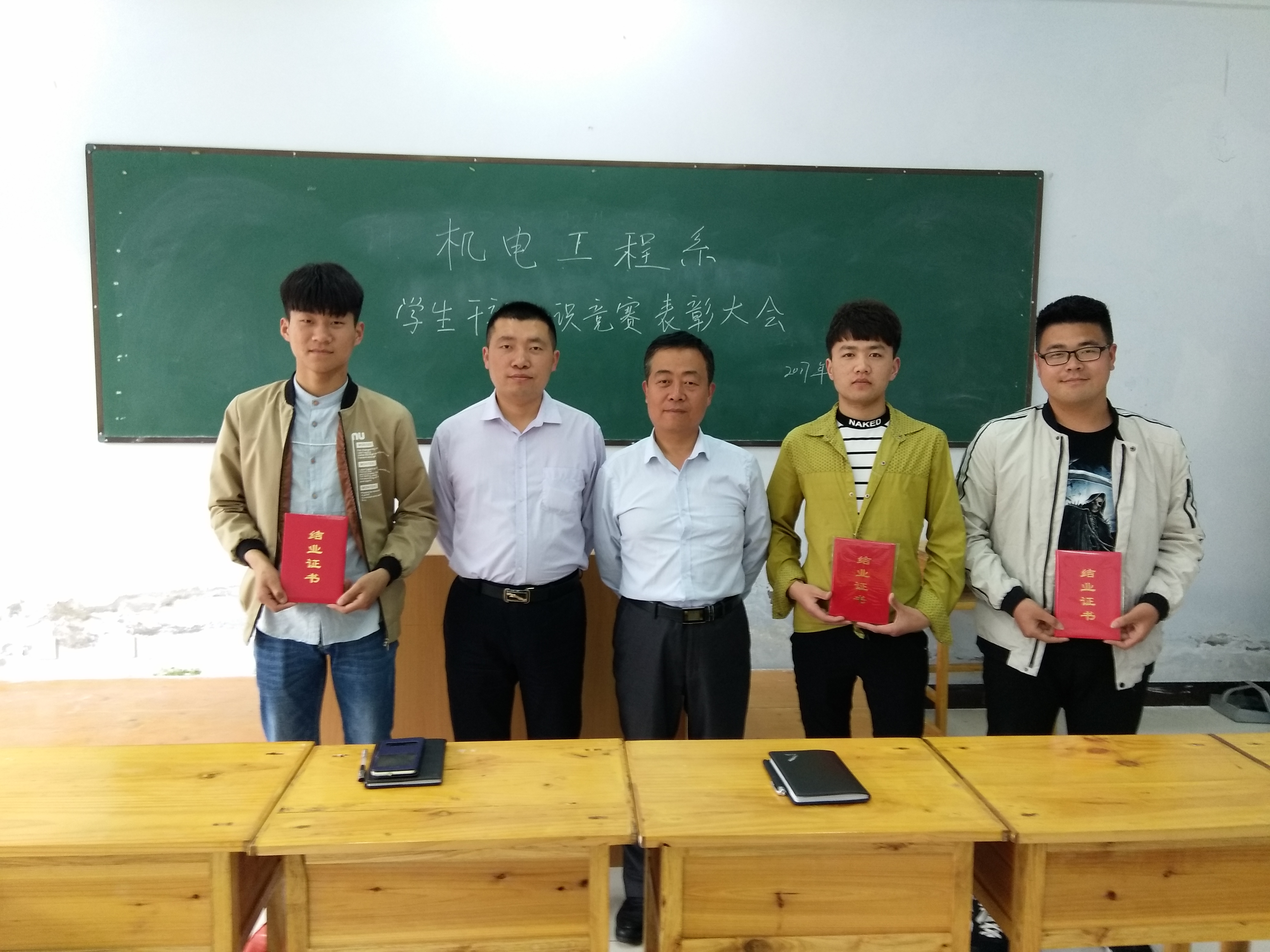本次培訓,共有159名學生干部通過考核。考核優(yōu)秀的23名學生干部分別參加了“班長杯”、“學生干部杯”、“寢室長杯”管理知識競賽。比賽現場更像是一場經驗交流會,選手們將自己班級先進的管理方法及運行模式、在學生管理中的感受與體會以及班級、寢室的文化建設等等都毫無保留的貢獻出來,與大家分享。經過評委認真評選,在2017年5月8日,機電系為取得“班長杯”班級管理知識競賽冠軍榮譽的14汽車檢測與維修二班的班長張怡偉、取得“學生干部杯”管理知識競賽冠軍的15機電一體化班的紀律委員劉冰偉和獲得“寢室長杯”管理知識競賽一等獎的D117寢室長張家鑫及其他獲獎學生頒發(fā)了獎品。