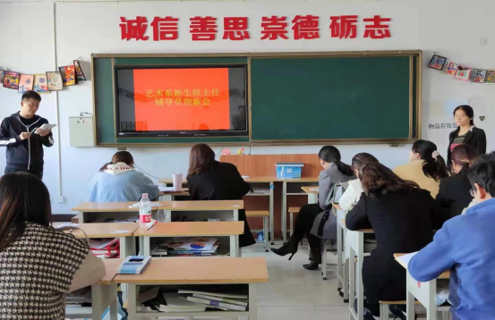 為做好2021年秋季學期開學迎新以及新生入學管理工作,增強班主任工作能力,提高班主任整體素質,進一步增強班級管理工作的針對性和實效性,提高學校德育工作和班級管理水平。藝術系于10月12日上午在A教學樓402召開了新學期新生班主任、輔導員迎新會。會議由藝術系負責人閻瑾瑜與張世浩老師主持召開,藝術系全員新生班主任及輔導員參加會議。