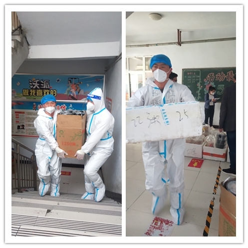疫情戰(zhàn)斗的沖鋒員——杜瑞濤、軒建舉,兩位樓長在前期教師人員少、工作強(qiáng)度大、精神壓力大、工作時間長的情況下,圓滿完成B、E棟宿舍2500多名學(xué)生的送餐、核酸檢測、值班任務(wù)。他們和突擊隊(duì)成員一起完成每日兩次的核酸檢測,又帶領(lǐng)男同志完成一日三次的搬餐、送餐任務(wù)。由于人員奇缺,他們又想讓同志們多休息一下,主動完成每日超過12小時的值班任務(wù)。每天的工作時長在18小時以上,經(jīng)常凌晨2、3點(diǎn)還要處理突發(fā)情況,早晨5點(diǎn)又開始新的任務(wù)。