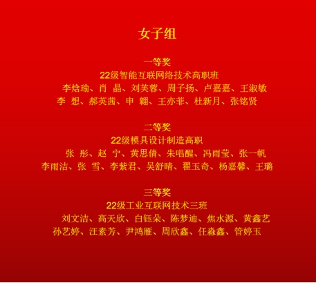 女子組獲獎名單