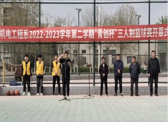 為進(jìn)一步增強(qiáng)班級凝聚力,豐富學(xué)生在校課余生活,鍛煉學(xué)生強(qiáng)健體魄。3月28日下午,機(jī)電工程系2022-2023學(xué)年第二學(xué)期“青創(chuàng)杯”籃球賽正式開幕。機(jī)電工程系主任張紅凱、黨總支副書記馮振華、副主任王會峰、團(tuán)總支書記程文浩出席開幕式,系部各班班主任老師及全體參賽選手參加開幕式。