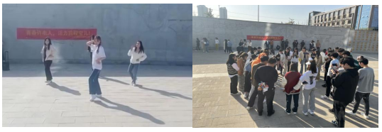 3月14日下午三點(diǎn),信息工程系21級(jí)軟件技術(shù)8班、藝術(shù)系21級(jí)嬰幼兒編程1班學(xué)生及輔導(dǎo)員在圖書館前魏都廣場(chǎng)聚合,以互動(dòng)游戲?yàn)橹鳎虚g穿插兩班級(jí)同學(xué)精心準(zhǔn)備的歌舞表演,兩班學(xué)生在陣陣歡聲笑語中打成一片。