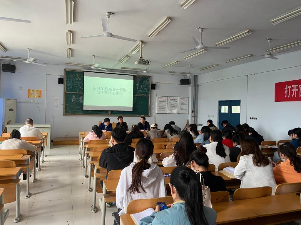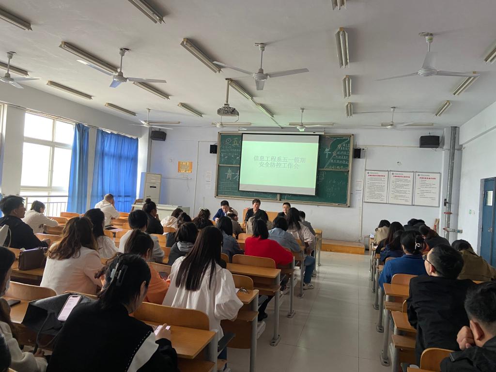 為貫徹落實學院關于對五一假期安全工作部署,進一步提高全系師生的安全防范意識,4月28日中午,信息工程系在教A310教室召開五一假期安全防控工作會,系主任陳曉紅、系學生科全體教師、輔導員及各班班主任老師參會。會議由系副書記王旭主持。