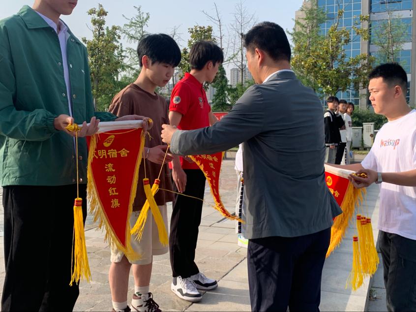升旗儀式的最后,主持人公布上周優(yōu)秀宿舍和優(yōu)秀班級(jí),由杜瑞濤老師給優(yōu)秀宿舍、班級(jí)代表頒發(fā)流動(dòng)紅旗,予以勉勵(lì)。頒獎(jiǎng)典禮表彰了優(yōu)秀宿舍和優(yōu)秀班集體,同時(shí)激勵(lì)著其他宿舍和班級(jí)營(yíng)造、樹立更好的宿舍和班集體風(fēng)貌!
