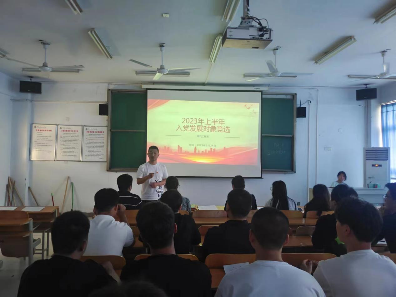 為進一步規(guī)范組織發(fā)展工作,切實提高學生黨員發(fā)展質(zhì)量,5月24日電氣工程系學生黨支部在教學樓A211召開了學生黨員發(fā)展對象選拔匯報會。此次參與發(fā)展的積極分子共22人,學生黨支部書記杜瑞濤及全體支部委員出席并擔任評委。會議由組織委員李源老師主持。