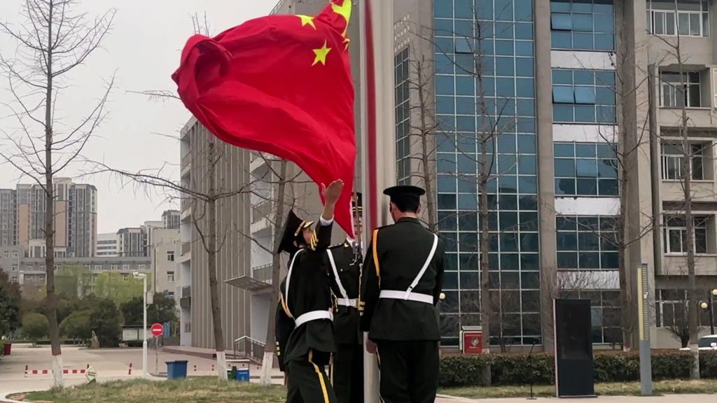 上午七時(shí)許,列隊(duì)整齊的國旗護(hù)衛(wèi)隊(duì)旗手們迎著晨曦,邁著整齊而矯健的步伐護(hù)送鮮艷的五星紅旗走向升旗臺,隨著雄壯嘹亮的國歌聲,五星紅旗冉冉升起,全體師生肅立行注目禮,目光中充滿了對祖國的熱愛與敬意。