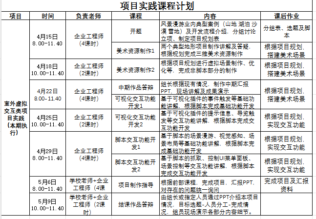 現(xiàn)代學(xué)徒制背景下的“雙導(dǎo)師”授課是學(xué)校專任教師和企業(yè)師傅,共同承擔(dān)教育教學(xué)工作,實(shí)施崗位培養(yǎng),確保學(xué)生(學(xué)徒)滿足學(xué)校與企業(yè)的人才培養(yǎng)目標(biāo)。希望通過(guò)這次校企聯(lián)合授課,充分發(fā)揮產(chǎn)教融合的作用,讓同學(xué)們接觸到企業(yè)的實(shí)際項(xiàng)目,了解虛擬現(xiàn)實(shí)項(xiàng)目開(kāi)發(fā)的流程以及企業(yè)人才需求,重新評(píng)估自身,補(bǔ)短板,提高自身競(jìng)爭(zhēng)力,為接下來(lái)實(shí)習(xí)就業(yè)做準(zhǔn)備。