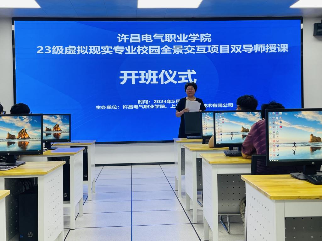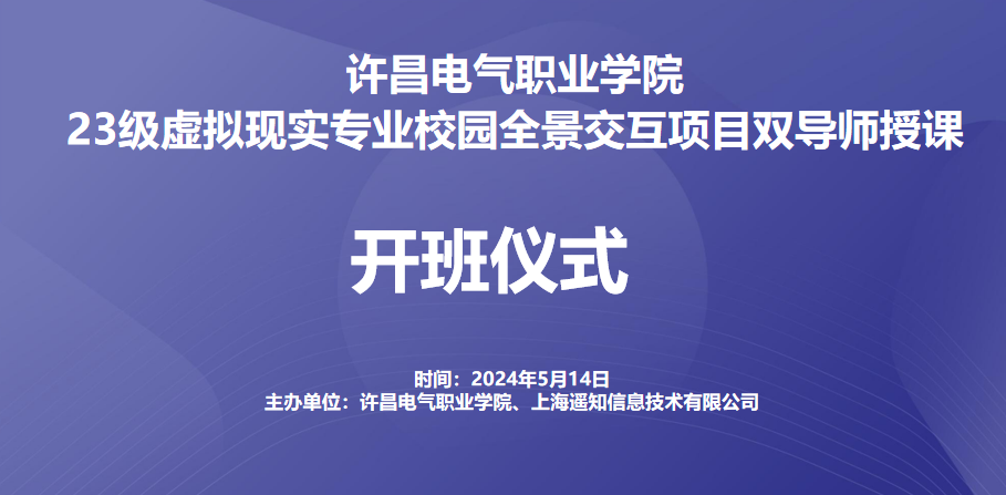 5月14日上午,信息工程系與上海遙知信息技術(shù)有限公司校企聯(lián)合開發(fā)校園全景交互課程在訓(xùn)A二樓VR實(shí)訓(xùn)室正式開班,這是繼上個(gè)月成功開展室外虛擬交互類項(xiàng)目雙導(dǎo)師授課后的又一次合作,信息工程系主任陳曉紅、虛擬現(xiàn)實(shí)技術(shù)應(yīng)用專業(yè)課教師出席了本次開班儀式,儀式由虛擬現(xiàn)實(shí)技術(shù)應(yīng)用專業(yè)負(fù)責(zé)人李紅亞主持。