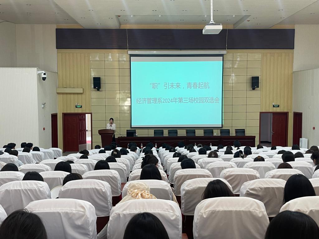 為切實解決困擾學(xué)生的實習(xí)就業(yè)難題,提高學(xué)生的實習(xí)就業(yè)質(zhì)量,積極推進企業(yè)靶向引才與學(xué)生精準實習(xí)就業(yè)“雙向奔赴”,5月21日、5月22日、5月27日以及5月28日,經(jīng)濟管理系在第二報告廳舉辦了四場2024年“‘職’引未來,青春啟航”校園雙選會,我系2024屆、2025屆學(xué)生積極參加本次雙選會招聘。