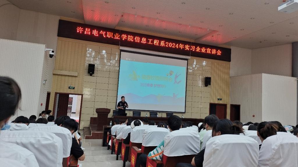 為進一步貫徹落實黨中央、國務(wù)院“穩(wěn)就業(yè)”“保就業(yè)”決策部署,有效做好2025屆畢業(yè)生崗位實習(xí)工作,促進用人單位需求與學(xué)院人才供給精準(zhǔn)對接,提高學(xué)生實習(xí)實踐能力水平,信息工程系于6月12日在學(xué)院第二學(xué)術(shù)報告廳開展了2024年實習(xí)企業(yè)宣講會。此次宣講會邀請到13家企業(yè),共提供了600個實習(xí)崗位。信息工程系主任陳曉紅、副主任李祿源出席會議,2025屆畢業(yè)班全體輔導(dǎo)員及1000余名學(xué)生參加了宣講會。本次宣講會由信息工程系就業(yè)創(chuàng)業(yè)指導(dǎo)科科長任曉鴿主持。