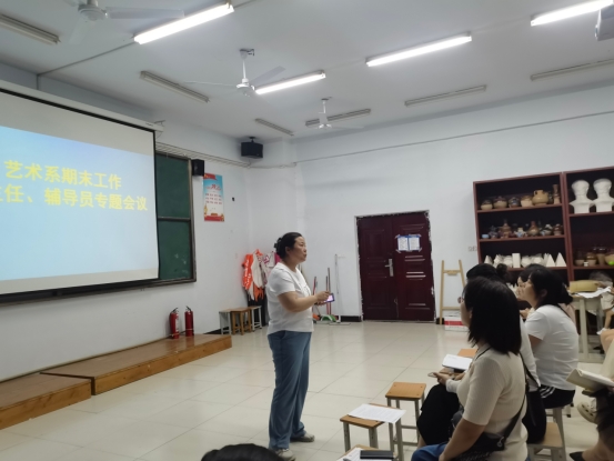 為做好期末學(xué)生管理和校園安全工作,6月20日,藝術(shù)系在A111教室召開班主任、輔導(dǎo)員期末工作專題會議。藝術(shù)系黨總支書記董淑紅,藝術(shù)系主任閻瑾瑜、副主任路慶敏、白鴿和全體班主任、輔導(dǎo)員老師出席會議。