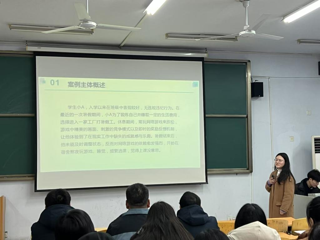 活動第一階段聚焦班級實際案例呈現(xiàn),重點從學(xué)生心理問題關(guān)懷與疏導(dǎo)、學(xué)業(yè)的幫扶與指導(dǎo)方面開展深入分析交流,旨在提高輔導(dǎo)員處理學(xué)生心理健康、危機(jī)干預(yù)的經(jīng)驗,程文浩、尚戰(zhàn)統(tǒng)、楊亞靜、吳彤、陳怡君先后分享題為《淺談后進(jìn)生的教育與培養(yǎng)》、《大學(xué)生心理健康》、《破專業(yè)迷茫之繭,引學(xué)生心靈歸航》、《于無聲處育繁花》、《關(guān)注學(xué)生內(nèi)心,助力健康成長》精彩案例,貼近事實,參會輔導(dǎo)員感同身受。豐富提升了與學(xué)生建立良好關(guān)系、有效溝通的手段。