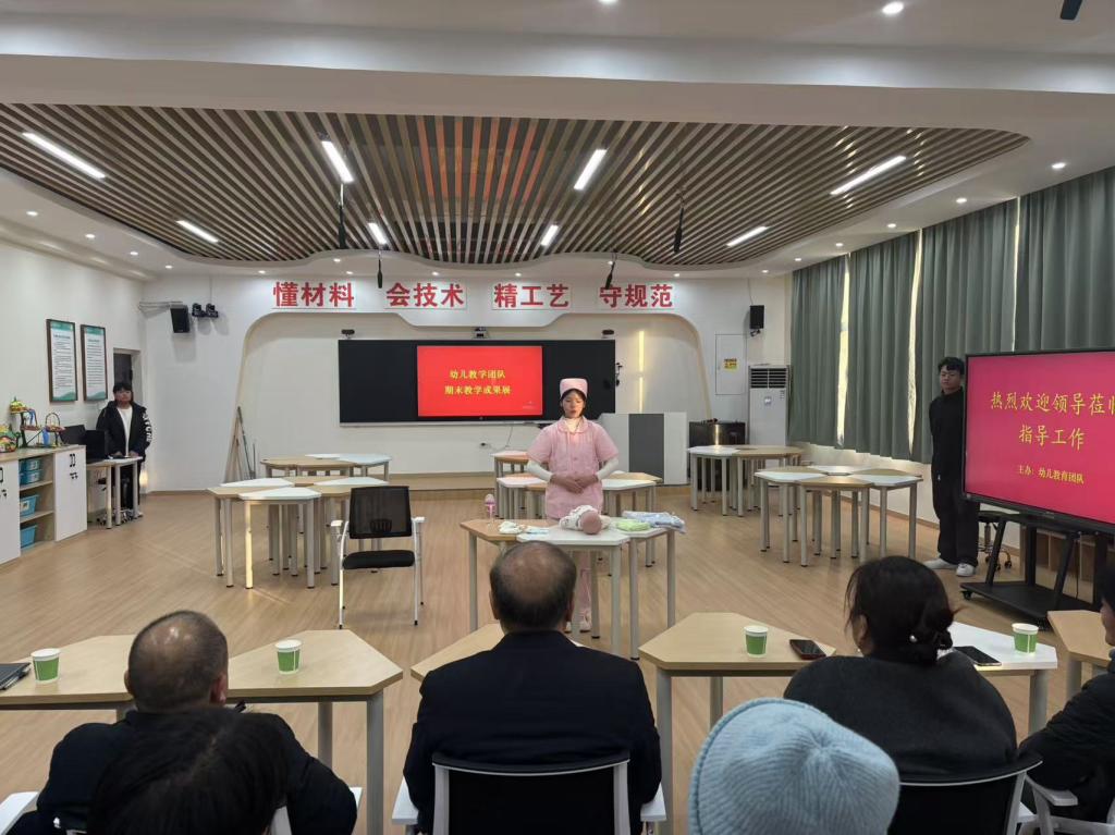 為見證學(xué)生技能成長,檢驗教師教學(xué)成果,12月27日下午,在實訓(xùn)E樓407實訓(xùn)室,藝術(shù)與設(shè)計學(xué)院(人文學(xué)院)幼兒教育團隊舉行期末教學(xué)成果展活動。學(xué)院副院長張俊才、藝術(shù)與設(shè)計學(xué)院黨總支書記董淑紅、藝術(shù)與設(shè)計學(xué)院院長閻瑾瑜、教務(wù)處處長韓基偉、人文學(xué)院黨政負(fù)責(zé)人吳玉爍、人文學(xué)院行政負(fù)責(zé)人王德真、以及幼兒教育團隊全體教師出席了此次活動。活動由幼兒教育團隊負(fù)責(zé)人王翊琳主持。