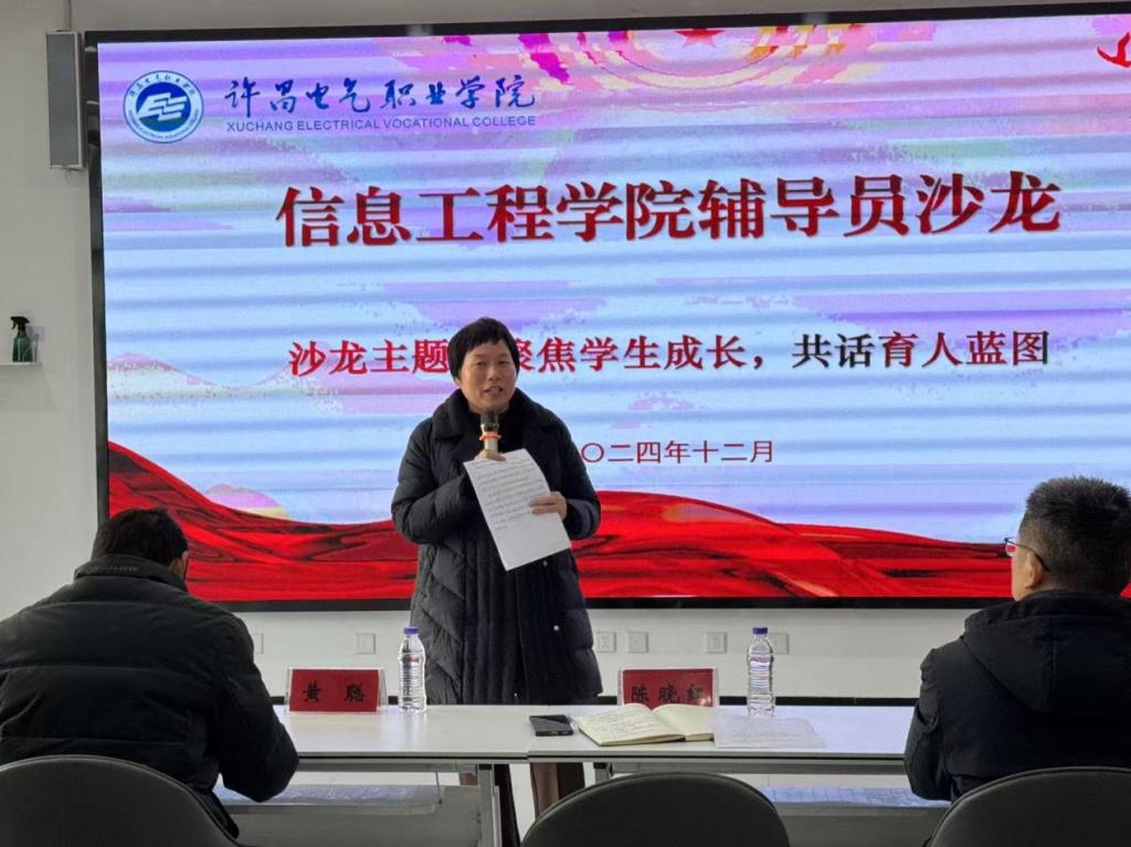 為進一步加強我校輔導員隊伍建設,搭建輔導員專業(yè)工作能力提升、經(jīng)驗交流、成果共享的平臺,切實提高輔導員在學生思想政治教育及日常管理工作中的理論水平和實踐能力,12月26日,信息工程學院在一站式服務中心舉辦了一場以“聚焦學生成長,共話育人藍圖”為主題的輔導員沙龍活動。參與活動的有信息工程學院黨總支書記陳曉紅,信息工程學院行政負責人王旭,學生處副處長黃聰,,藝術與設計學院團總支書記張世浩,電氣工程學院團總支書記徐爽,財經(jīng)與電商學院老師張儀,以及信息工程學院全體輔導員與班主任老師。本次活動由信息工程學院團總支書記宋尚霖主持。