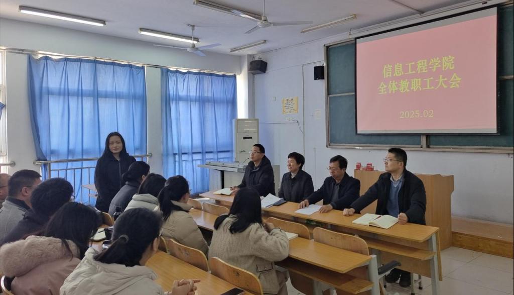 2月27日,信息工程學(xué)院在教A310召開新學(xué)期全體教職工大會(huì)。院工會(huì)主席張貴軍出席會(huì)議并發(fā)表總結(jié)講話,信息工程學(xué)院黨政負(fù)責(zé)人及全體教職工齊聚一堂,共同回顧過往,展望新學(xué)期發(fā)展藍(lán)圖,為學(xué)院新征程奠定堅(jiān)實(shí)基礎(chǔ)。會(huì)議由行政負(fù)責(zé)人王旭主持。