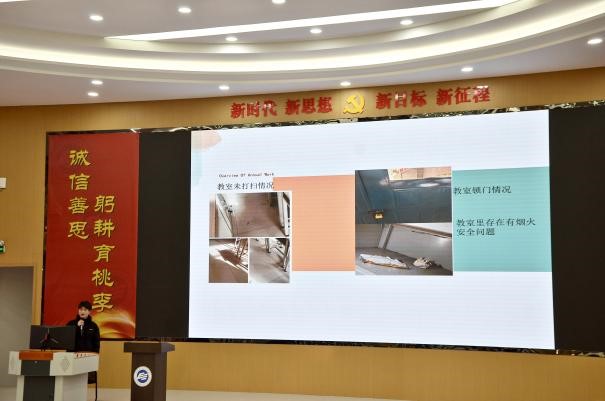 隨后,大學生自我管理委員會主席團成員周浩然就預防電信詐騙和消防安全等熱點問題進行了詳細講解。他通過生動的案例和實用的防范措施,增強了班委們的安全意識和應急處理能力。接著,賈俊陽就教室和寢室衛(wèi)生的具體要求和注意事項進行了說明,強調(diào)了良好的衛(wèi)生環(huán)境對學習和生活的重要性。李成杰則圍繞團課的開展和團學活動的組織問題,提出了切實可行的建議和方案,為班委們提供了寶貴的經(jīng)驗。