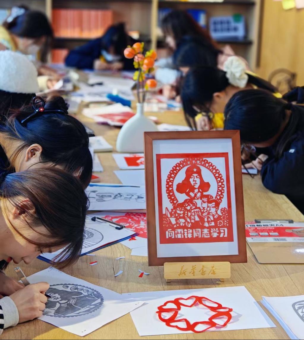 活動(dòng)期間,財(cái)經(jīng)與電商學(xué)院的老師和同學(xué)們熱情高漲,齊聚一室,共同投入到以雷鋒為主題的剪紙作品創(chuàng)作中。他們圍繞雷鋒精神主題,充分利用非遺剪紙藝術(shù)的獨(dú)特韻味,憑借靈巧的雙手和豐富的想象力,將雷鋒同志的光輝形象刻畫(huà)在每一幅剪紙作品之中。