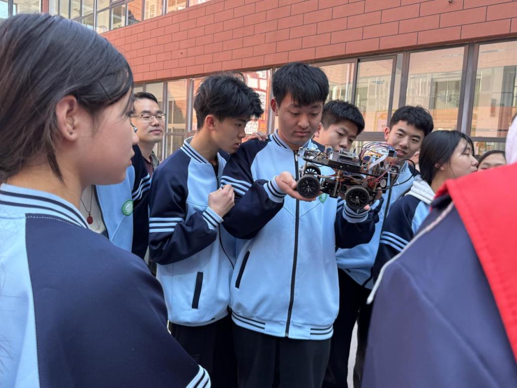 活動伊始志愿者帶著自己制作的小電子產(chǎn)品給同學(xué)們參觀分享。這兩款小產(chǎn)品能夠使用手機(jī)連接控制從而實現(xiàn)各種運動,可將其應(yīng)用于不同場景。志愿者講解完畢后,邀請同學(xué)們進(jìn)行互動體驗,增加了科技魅力的親身體驗感,大家臉上都洋溢著歡樂的笑容!